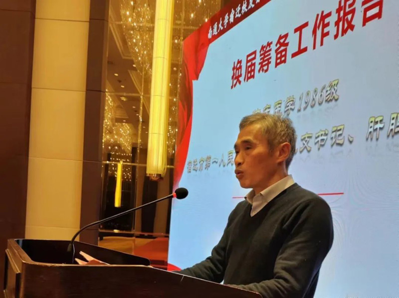 會上,社會資源處副處長、校友會副秘書長張效東宣讀了校友總會關(guān)于同意宿遷校友會換屆的批復(fù)。臨床醫(yī)學(xué)1986級校友、宿遷市第一人民醫(yī)院外科黨總支書記、肝膽胰外科主任胡建平作籌備工作報告。